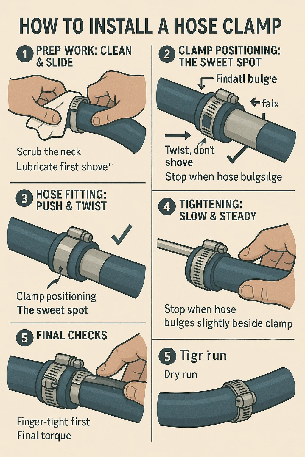 Re-tighten if needed: Some hoses settle after heat cycles. Check clamps after first use.