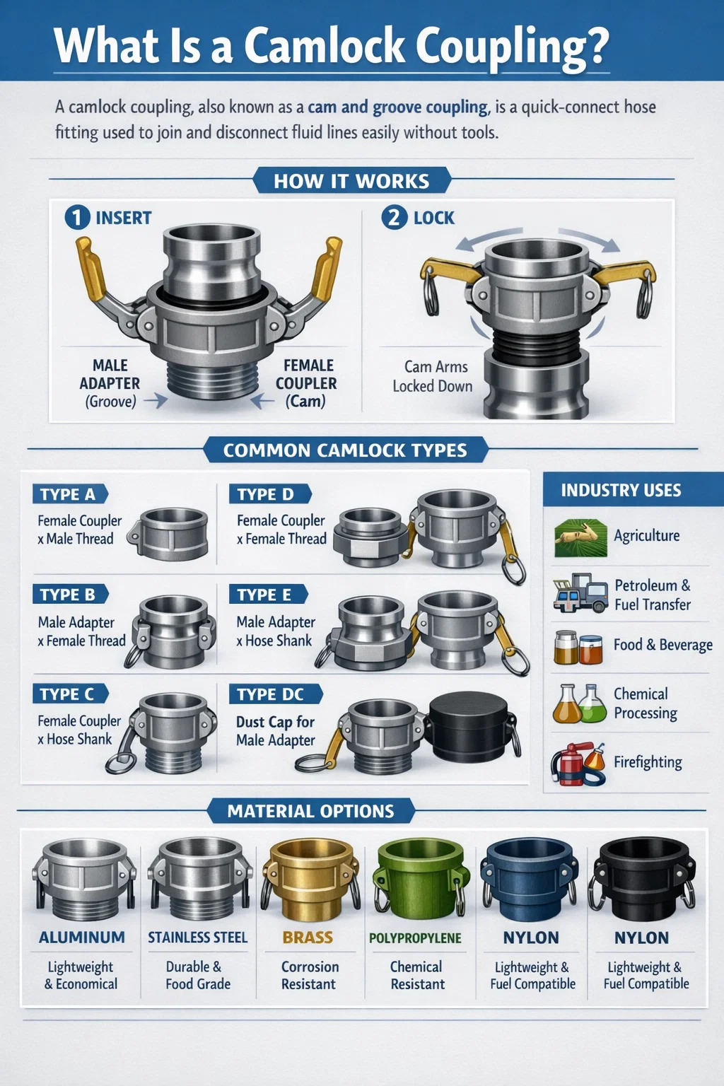 - 2 The Seven Standard Camlock Coupling Types Explained